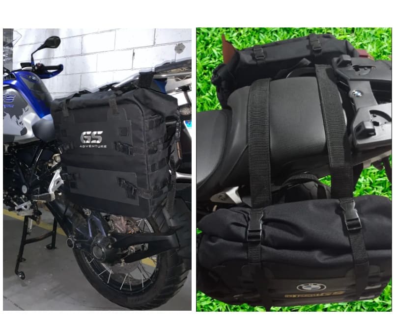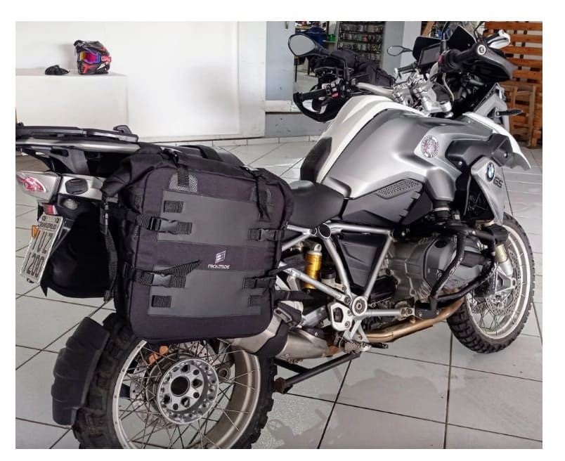 Os alforges apresentam uma altura ajustável, possui sistema de fecho em rolo, É RESISTENTE A CHUVAS E CONDIÇÕES EXTREMAS ,acompanha um saco estanque fixado em cada bolsa e são fixados com um sistema de montagem estável e seguro de três pontos.