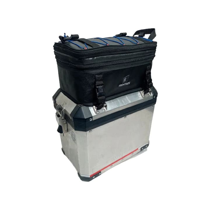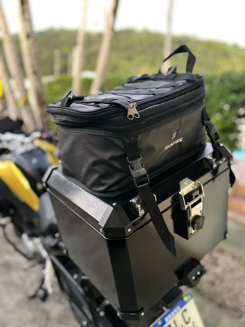 Fixação: De fácil instalação em baús laterais e traseiros com carga por cima .As malas superiores são equipadas com tiras e engates ultra resistentes para fixar em cima do baú de alumínio, na espera ou no banco do passageiro por debaixo do assento.